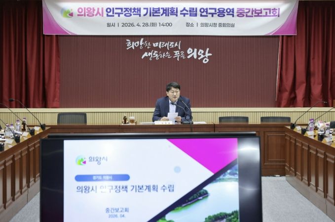 (비전21뉴스=정서영 기자) 의왕시는 4월 28일 시청 중회의실에서 '인구정책 기본계획 수립 연구용역 중간보고회'를 개최하고, 의왕시 맞춤형 인구정책 방향을 논의했다.