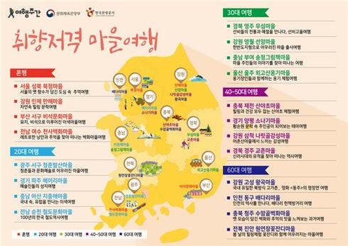 이번 봄 여행주간 특별 프로그램은 로케이션 매니저가 엄선한 20개 마을과 이 중 5곳에서 진행되는 ‘취향저격 마을여행단’이다. 드라마, 영화 등 상황별로 촬영에 가장 적합한 장소를 찾는 김태영 로케이션 매니저가 연령대별, 동반자 유형별로 소개하는 매력적인 마을여행지 20곳은 위와 같다.