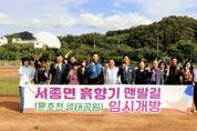 (비전21뉴스) 양평군 서종면은 지난 17일 오후 1시, 서종면 문호리 968 일대 문호천 생태공원에서 ‘서종면 흙향기 맨발길’ 임시 운영을 기념하는 걷기 행사를 개최했다. 이번 행사는 서종면장을 비롯해 지역 기관·단체장, 각 마을 이장, 주민 등이 함께 참여해 맨발로 자연을 체험하며 건강 증진과 소통의 의미를 나누는 시간으로 진행됐다. ‘서종면 흙향기 맨발길’은 하늘에서 바라보면 서종면의 ‘서’ 자를 형상화한 걷기 코스로, 문호천의 아름다운 자연경관과 어우러진 생태 친화형 산책길이다. 특히, 약 1,500평 규모에 만개한 코스모스 꽃밭은 행사 당일 주민들과 방문객들의 눈길을 사로잡으며 큰 호응을 얻었다. 이날 걷기 행사에는 지역 주민은 물론 외부 관광객들도 참여해 지역에 활기를 불어넣었으며, 가을 정취를 물씬 느낄 수 있는 코스모스 경관과 생태공원이 어우러진 맨발길은 서종면의 새로운 관광 명소로 자리매김할 것으로 기대된다. 홍주표 서종면장은 “흙향기 맨발길은 주민과 관광객 모두가 자연 속에서 치유와 여유를 느낄 수 있는 서종면의 새로운 명소”라며, “앞으로도 지속적인 정비와 편의시설 보완을 통해