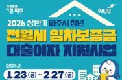 (비전21뉴스) 파주시는 청년가구의 주거비 부담을 완화하기 위한 청년 전월세 임차보증금 대출이자 지원사업 신청을 오는 1월 23일부터 2월 27일까지 받는다. ‘청년 전월세 임차보증금 대출이자 지원’은 파주시에 주민등록을 둔 무주택 가구 중 제1금융권에서 전월세 보증금 대출을 받은 19~39세 청년에게 대출 잔액의 2% 이자(연 최대 200만 원)를 지원하는 사업으로, 상·하반기 각 10가구를 선정해 최대 100만 원씩 반기별로 총 2회 지급한다. 신청 대상은 1986년 1월 20일부터 2007년 1월 21일 사이에 출생한 청년으로 하며, ▲공고일 기준 세대원 전원 무주택자 ▲기준 중위소득 180% 이하(1인 가구 기준 461만 6천 원) ▲파주시에 소재한 주택으로 전세 임차보증금 3억 이하(월세의 경우 전월세 전환율 6.7% 이하) 및 전용면적 85㎡ 이하의 주택에 거주해야 한다. 단, 기초생활보장수급자(생계, 의료, 주거급여)와 공공임대주택 거주자, 버팀목 대출 등 주택도시기금을 통해 전세자금을 대출받은 사람, 금융권의 대출 용도가 신용·일반 용도인 경우는 지원 대상에서 제외된다. 지원을 원하는