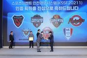 (비전21뉴스) 김천상무가 스포츠안전재단의 스포츠이벤트 안전경영시스템 인증을 획득했다. 김천상무프로축구단이 12월 3일 서울 송파구 올림픽 파크텔에서 열린 스포츠안전재단의 스포츠이벤트 안전경영시스템(KSSF20211)을 인증받았다. 스포츠이벤트 안전경영시스템은 국제표준화기구(ISO)를 기반으로 국내 스포츠 이벤트 실정에 맞추어 안전 관리 체계 및 운영 수준을 향상시키기 위한 목적으로 마련된 표준 요구 규격이다. 김천상무는 지난 7월부터 약 4개월에 걸쳐 컨설팅, 현장심사, 매뉴얼과 절차서 및 안전가이드 등 총 9종의 문서 제정, 최종 심사를 거쳐 안전경영시스템을 획득했다. 김천상무 이재하 대표이사는 “안전은 두 번 세 번 강조해도 지나침이 없다. 이번 스포츠이벤트 안전경영시스템 인증을 통해 더욱 안전한 홈경기를 운영할 수 있게 됐다. 앞으로도 김천상무 홈경기를 찾아주시는 김천 시민과 축구팬 여러분의 안전한 관람 환경 조성을 위해 최선을 다하겠다.”라고 말했다. 마케팅팀 백재호 팀장은 “올해 안전경영시스템을 준비하면서 구단 임직원의 안전 의식 제고와 실질적인 안전 시스템을 구축할 수 있었