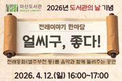 (비전21뉴스) 김포시 마산도서관은 제4회 도서관의 날을 맞아 오는 4월 12일 오후 4시부터 5시까지 마산도서관 3층 다목적실에서 전래이야기 한마당 '얼씨구, 좋다!'를 운영한다. 4월 12일은 '도서관법'에 따라 도서관에 대한 국민의 이해와 관심을 높이고 이용을 촉진하기 위해 지정된 ‘도서관의 날’이다. 시는 이를 기념해 가족 단위의 관람객이 즐길 수 있는 공연을 마련했다. 공연은 밴드 ‘판’이 진행하며, 건반과 베이스, 기타, 장구 등 다양한 악기를 활용해 전래동화를 음악으로 재구성한 무대다. 혹부리 영감, 별주부전 등 친숙한 이야기를 노래와 연주로 풀어내며, 옛 동요와 국악 장단을 활용한 창작곡도 함께 선보일 예정이다. 이번 공연은 김포시민 100명을 대상으로 하며, 3월 24일 오전 10시부터 김포시 통합예약 홈페이지를 통해 신청할 수 있다.