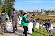(비전21뉴스) 새마을문고 양주시지부는 10월 21일 오전 8시 50분부터 약 2시간 동안 독수리병영도서관 장병들과 함께 부대 앞 샘내 일대 천변에서 ‘건강과 환경을 지키는 줍킹데이’ 행사를 성황리에 개최했다. 이번 행사는 새마을문고 양주시지부 회원 10여 명과 독수리 병영도서관 장병 60여 명이 참여한 가운데 진행됐으며, 참가자들은 천변을 중심으로 쓰레기 수거와 잡초 제거 등 환경정화 활동에 힘을 모았다. 이날 수거된 쓰레기만 해도 약 200킬로그램에 달해 지역 환경 개선에 큰 기여를 했으며, 주민들이 체감할 수 있는 깨끗하고 쾌적한 마을 만들기에 앞장섰다. ‘줍킹데이’는 건강한 걷기 활동과 환경보호를 동시에 실천하는 뜻깊은 행사로, 참가자들은 걷는 동안 주변 쓰레기를 줍는 방식으로 활동을 펼쳤다. 특히 이번 행사에서는 단순한 환경정화뿐 아니라 지역사회와 군이 협력하여 공동체 의식을 높이는 계기가 됐다는 점에서 더욱 의미가 깊었다. 행사에는 오경옥 문고회장을 비롯해 정광현 부회장, 이상미 총무, 이윤복·김보경·정희숙.이윤복 이사 등이 함께 참여하여 회원들과 장병들을 격려하고, 지역사회 환경보호의 중요성을 강조