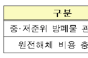 중‧저준위 방폐물 관리비용과 원전해체 비용 충당금 비교 [비전21]산업통상자원부는 2017년 방사성폐기물 관리비용산정위원회를 개최해(총5회) 중·저준위 방폐물 관리비용, 원전해체 비용 충당금을 재산정해 고시했다. 방사성폐기물 관리비용은 방사성폐기물관리법 시행령 제5조에 근거해 산업부 장관이 2년마다 검토해 고시하도록 규정하고 있다. 산업부는 방폐물 발생자인 원전사업자, 방사선진흥협회 등 사전의견 수렴을 거치고, 재무, 회계, 환경, 원자력, 에너지경제, 시민단체 등 외부 전문가가 포함된 비용산정위원회를 개최해 다음과 같이 방폐물 관리비용을 산정했다. 중·저준위 방폐물 비용(200L 드럼당)은 지난 2015년 고시한 1,219만원에서 2017년에는 12.6% 인상한 1,373만원으로 재산정해 고시했다. 비용 상승요인은 원자력안전법 시행령(제99조) 개정에 따른 처분시설 폐쇄후 관리기간 확대(100년 → 300년), 공용설비 건설비 증가 등이 반영됐다. 중·저준위 방폐물 비용과 연동되는 방사성동위원소(RI) 방폐물 관리비용(200L 드럼당)은 지난 2015년 고시한 최저 375만원에서 최고 2,743만원이 2017년에는 최저 431만원에서 최고 2,983만원