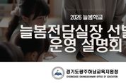 (비전21뉴스) 경기도광주하남교육지원청은 11월 6일, 관내 초등학교 교원을 대상으로‘2026 늘봄전담실장 선발 및 운영 설명회’를 온라인 화상회의 방식으로 개최했다. 이번 설명회는 늘봄전담실장 제도에 대한 이해를 높이고, 현장 중심의 정책 추진 방향을 공유하기 위해 마련됐다. 설명회에서는 △2026년 늘봄전담실장 임용후보자 선발 공개전형 시행 요강 △늘봄학교 정책 방향 및 추진 현황 △늘봄전담실장의 주요 직무와 역할 △거점형 늘봄센터 운영 체계 등 실질적인 내용을 중심으로 안내가 이루어졌다. 특히 1기 늘봄전담실장이 직접 참여해 학교별 운영 사례와 경험을 공유함으로써, 참여 교원들이 현장의 실제 운영 방식과 역할 수행의 구체적인 모습을 이해할 수 있는 뜻깊은 시간이 됐다. 현재 광주하남교육지원청 관내에는 총 17명의 늘봄전담실장이 49개 학교의 늘봄학교 운영을 지원하고 있으며, 내년에는 2기 늘봄전담실장 추가 선발을 통해 학교별 맞춤형 지원 체계를 한층 강화할 예정이다. 오성애 교육장은 “이번 설명회가 늘봄전담실장의 전문성과 현장 지원 역할을 널리 알리는 계기가 되길 바란다”며, “학교 현장에서