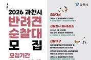 (비전21뉴스) 과천시가 반려견과 함께하는 산책 활동에 방범 순찰 기능을 접목한 ‘과천시 반려견순찰대’ 신규 대원을 오는 3월 18일 오후 4시까지 공개 모집한다. ‘반려견순찰대’는 주민이 반려견과 거주지 주변 산책을 하며 범죄나 생활안전 위험 요소를 발견할 경우 즉시 112나 120으로 신고하는 주민 참여형 치안 활동이다. 순찰 시에는 견주와 반려견 모두 순찰복을 착용하며 전용 앱을 통해 순찰일지를 작성하게 된다. 선발된 반려견순찰대에게는 활동에 필요한 온라인 교육과 전문 훈련사가 동반하는 합동 교육 순찰의 기회가 제공되며, 연말에는 우수 대원에게 감사장을 수여하는 등 다양한 지원을 통해 자긍심을 높일 계획이다. 모집 대상은 동물등록된 반려견을 키우고 있는 과천 시민이며 강아지 유모차를 이용하는 보호자도 신청할 수 있다. 신청은 3월 18일까지 반려견순찰대 공식 누리집을 통해 가능하다. 선발 심사는 3월 21일 과천 중앙공원 야외음악당에서 진행된다. 전문 훈련사가 반려견의 ▲ 리드 워킹(따라 걷기) ▲ 명령어 이행(기다리기, 앉기) ▲ 외부 자극 반응(대인‧대물‧대견) 등을 종합적으로 평가해 약