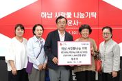 (비전21뉴스) 지난 3일, 청정하남시니어협회(청시회)는 성금 100만원을 하남시에 전달하고 기탁식을 가졌다. 이날 기탁식에는 이현재 하남시장을 비롯해 박규섭 회장 등 관계자들이 참석하여 자리를 빛냈다. 박규섭 회장은 “추석 명절을 맞아 소외된 이웃들에게 정을 나누고, 조금이나마 도움이 되길 바라며 경제적으로 어려운 시기를 잘 극복해 나갔으면 한다”고 말했다. 이현재 하남시장은“ 따뜻한 마음을 나눠주시는 청정하남시니어협회에 깊이 감사드리며 기탁해 주신 성금은 관내 어려운 이웃에게 소중히 전달하겠다”고 전했다. 이날 기탁된 성금은 관내 취약계층에게 배부될 예정이다.