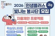(비전21뉴스) 광명시 인생플러스센터가 ‘2026년 인생플러스 빛나는 봉사단’ 제3기 봉사자 40명을 2월 23일부터 3월 11일까지 모집한다. ‘인생플러스 빛나는 봉사단’은 40~64세 광명시 중장년이 지닌 지식과 역량을 평생학습 자원으로 확장해 지역공동체에 필요한 변화를 함께 만들어가는 ‘재능활용 학습실천’ 자원봉사 활동이다. 지난 1‧2기 활동에는 총 50명의 봉사자가 참여해 ▲아동 학습보조 및 책놀이 ▲1:1 디지털 코칭 ‘신중년 디지털 아지트’ ▲어르신 아로마 향기테라피 ▲중장년 드론 조종 체험 등 다양한 활동을 펼쳤다. 이들은 총 413회, 누적 1천358시간에 걸친 봉사활동으로 지역사회에 활력을 불어넣었다는 평가를 받았다. 이번 3기 모집 분야는 크게 현장지원형(10명)과 프로젝트형(30명)으로 나뉜다. 현장지원형은 센터 프로그램 운영과 행사 안내를 돕는 ‘인생플러스 서포터즈’와 교육강사 보조 및 모니터링 일지를 작성하는 ‘학습 모니터링’으로 운영한다. 프로젝트형은 ‘신중년 디지털 아지트(1:1 코칭)’, ‘초등학생 책 낭독놀이’를 비롯해 봉사자가 직접 프로그램을 기획해 관