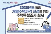 (비전21뉴스) 성남시는 내년 1월 16일까지 단독·다가구·상가주택을 대상으로 ‘2026년 1월 1일 기준 개별주택가격 산정’을 위한 주택특성조사를 실시한다. 이번 조사는 총 2만8970호(수정구 1만5829호, 중원구 7754호, 분당구 5387호)를 대상으로 진행된다. 정확한 주택특성 파악을 위해 조사요원은 건축물관리대장, 토지대장 등 행정정보를 사전에 확인한 뒤 현장을 방문해 △토지 형상 △방위 △도로 접면 상태 등 토지특성과 △주택 이용 상황 △건물구조 △지붕 형태 △증·개축 여부 등 건물 특성을 조사할 예정이다. 조사 완료 후에는 결과를 반영해 개별주택가격을 산정하고, 한국부동산원의 검증을 거쳐 주택 소유자와 이해 관계인에게 열람 기회를 제공한다. 이후 의견 제출 절차와 부동산가격공시위원회 심의를 통해 내년 4월 30일 개별주택가격을 최종 결정·공시할 예정이다. 성남시 관계자는 “개별주택가격은 국세·지방세, 건강보험료 등 각종 공적 업무의 기초자료로 활용되는 중요한 지표”라며 “정확한 조사를 위해 조사요원의 현장 방문이 필수적인 만큼 시민 여러분의 적극적인 협조를 부탁드린다”고 말했다.