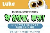 (비전21뉴스) 성남도시개발공사 중원도서관은 지역 어린이들에게 인공지능(AI) 기술을 활용한 새로운 독서 체험 기회를 제공하기 위해 ‘책 친구 로봇, 루카(LUKA)’를 오는 12월까지 운영한다고 21일 밝혔다. ‘루카’는 책 표지를 인식해 음성으로 내용을 읽어주는 인공지능 독서로봇으로, 유아와 어린이가 스스로 책을 읽고 들으며 독서의 즐거움을 느낄 수 있도록 돕는 AI 독서학습 보조기기다. 이번 사업은 루카를 활용한 전시와 기관 협력 프로그램을 통해 어린이들에게 친숙하고 흥미로운 독서 경험을 제공하고자 마련됐다. 먼저 중원도서관에서는 한 달간 ‘책 읽어줘! 루카’ 전시가 진행된다. 어린이·가족열람실에 루카와 전집을 함께 비치해, 어린이들이 직접 로봇을 체험하며 자연스럽게 책 읽는 즐거움과 호기심을 느낄 수 있도록 운영된다. 시민 누구나 자유롭게 참여 가능하며, AI 기술과 독서가 결합된 혁신적인 독서문화를 체험할 수 있는 특별한 기회를 제공한다. 또한, 도서관 밖에서도 아이들이 책과 만날 수 있도록 ‘책 나들이 ON 루카’ 협력 프로그램을 진행한다. 성남시 내 보육기관 및 교육기관 3곳에 루카와 전집 도서를 한 달간 지원해, 더 많은 어린이들이 루카와 함께