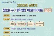 (비전21뉴스) 광명시는 오는 8일부터 12일까지 ‘2026년 상반기 청년 아르바이트’ 참여자 100명을 모집한다. 모집 대상은 2025년 12월 1일 공고일 기준 광명시에 주민등록이 되어 있는 만 18~29세 미취업 청년(1995년 12월 2일~2007년 12월 1일 출생자)이다. 선발된 청년은 2026년 1월 5일부터 1월 30일까지 4주간(실근무 20일), 하루 7시간씩 근무하며 시급은 1만 320원이다. 근무 형태에 따라 출근일 기준 실내 근무 5천 원, 실외 근무 8천 원의 부대비를 추가 지급한다. 모집인원 100명 중 30명은 기초생활수급자, 차상위계층, 한부모 가구, 등록장애인, 2자녀 이상 가구, 보훈대상자, 북한이탈주민 등 사회적 배려계층을 별도 선발하며, 나머지 70명은 일반 청년을 대상으로 선발한다. 단, 광명시 청년일자리 사업(대학생 아르바이트, 청년 아르바이트)에 참여한 경험이 있는 경우 지원이 제한된다. 이 사업은 광명시청 본청·사업소·행정복지센터·돌봄기관·초등학교 등에서 행정 보조와 현장 지원 업무를 경험할 수 있는 단기 일자리 프로그램으로, 청년