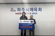 (비전21뉴스) 파주가 낳은 배구 인기인(스타)이자 아이비케이(IBK)기업은행 알토스 소속 이주아 선수가 고향 후배들을 위해 1천만 원을 기부하며 남다른 고향 사랑을 전했다. 파주시체육회는 지난 23일 체육회 회의실에서 이주아 선수와 부모, 파주시배구협회 관계자(박희수 회장, 황우연 부회장, 전찬혁 사무국장) 등이 참석한 가운데 기부금 전달식을 개최했다. 이번에 전달된 기부금은 파주 지역 생활체육 활성화를 비롯해 유소년 및 학생 선수 육성, 체육 기반 시설 개선 등 파주시 체육 발전을 위한 다양한 사업에 사용될 예정이다. 이주아 선수는 “고향 파주에서 많은 응원과 도움을 받으며 운동을 시작했고, 덕분에 지금의 자리까지 올 수 있었다”라며, “지역 체육 발전과 후배 선수들에게 작게나마 힘이 되고자 기부를 결심하게 됐다”라고 소감을 밝혔다. 이어 “앞으로도 파주 체육이 더욱 활성화돼 꿈을 키우는 후배들이 더 나은 환경에서 운동할 수 있기를 바란다”라고 덧붙였다. 김종훈 파주시체육회장은 “파주 출신 국가대표 선수로 훌륭하게 성장한 이주아 선수가 고향을 잊지 않고 나눔을 실천해 준 데 대해 깊이 감사드린다