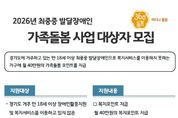 (비전21뉴스=정서영 기자) 경기도가 2026년 최중증 발달장애인 가족돌봄 사업 대상자 145가구를 12월 2일까지 모집한다. 최중증 발달장애인이란 도전적 행동이 심하고 일상생활에 제약을 지닌 통합돌봄이 필요한 발달장애인이다. 경기도는 돌봄이 필요한 모든 도민들을 대상으로 누구나, 언제나, 어디나 빈틈없는 돌봄을 제공하는 360도 돌봄사업을 하고 있다. 최중증 발달장애인 가족돌봄 사업은 이 가운데 ‘어디나 돌봄’ 사업의 하나로 진행한다. 2024년 4월 처음 가족돌봄 사업을 시행한 이래 매달 210가구에 월 40만 원씩 돌봄포인트를 제공해 생필품 구입부터 여가활동 지원까지 다양한 부분에서 사용하여 장애인 당사자와 가족의 생활안정에 기여하고 있다. 2026년 최중증 발달장애인 가족돌봄 사업의 지원 대상은 경기도에서 거주하는 복지관, 직업재활서비스 등 복지서비스 미이용으로 돌봄사각지대에 놓인 만 18세 이상 발달장애인이다. 선정 시 월 40만 원 가족돌봄포인트를 1년간 지원하고 지속적인 모니터링으로 복지서비스와 대상자를 연계하는 서비스를 제공한다. 2026년 모집인원은 145명으로 전년과 다르게 모집인원을 시군별 배분해 31개 모든 시군에서 공정하게 선정자가 나
