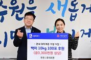 (비전21뉴스) 유치회관이 9월 30일 “취약계층 가정에 전달해 달라”며 수원특례시에 백미 100포를 기부했다. 수원시는 4개 구에 25가구씩, 총 100가구에 백미를 배분할 예정이다. 이날 수원시청에서 열린 전달식에는 유은수 유치회관 대표, 김현수 수원시 제1부시장 등이 참석했다. 유은수 대표는 “추석 명절에 작지만 따뜻한 마음이 이웃들에게 전해지길 바란다”며 “나눔 활동을 지속해서 이어가겠다”고 말했다. 김현수 제1부시장은 “어려움을 겪는 이웃을 위해 꾸준히 나눔 활동을 해 주시는 유치회관에 진심으로 감사드린다”며 “따뜻한 마음을 도움이 필요한 가정에 잘 전달하겠다”고 말했다.