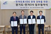 (비전21뉴스) 경기도는 24일 경기도청 북부청사에서 경기남부도로(주), 제삼경인고속도로(주), 일산대교(주) 등 도내 민자도로 사업자 3개사와 ESG(환경·사회·투명) 경영 강화를 위한 업무협약을 체결했다. 지속가능한 도로 환경 조성과 지역사회 공헌활동 활성화를 위해 마련된 이번 협약체결에는 김대순 경기도 행정2부지사와 민자도로 사업자 대표이사가 참석했다. 협약의 주요내용으로는 환경 측면에서 온실가스 배출을 최소화하도록 친환경 시설물․장비 도입에 힘쓰고, 사회적 책임으로는 지역사회 공헌활동과 도로 이용객의 안전․보건 강화를 포함한다. 지배구조 부문으로는 법과 윤리를 준수하고 투명한 기업 운영 체계를 마련하는 데 적극 협력하는 내용을 포함한다. 경기도는 민자사업자의 원활한 ESG 경영을 위해 필요시 적극적으로 행정지원할 예정이며, 협약기관 간 실무협의회를 구성하여 ESG 경영 강화에 대하여 지속적으로 논의할 계획이다. 이번 협약으로 민자도로 수익의 지역사회 환원을 통해 민자도로에 대한 ‘비싼 요금’ 또는 ‘과도한 수익 추구’라는 기존 인식을 전환하고, RE100과 같은 글로벌 환경 목표에도 기여할