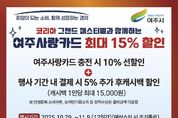 (비전21뉴스) 여주시는 ‘2025 코리아 그랜드 페스티벌’ 기간인 오는 10월 29일부터 11월 9일까지 ‘여주사랑카드 최대 15% 할인’ 행사를 한다고 밝혔다. 여주사랑카드 사용자는 충전 시 10% 선할인(인센티브 충전)을 받을 수 있으며, 행사기간 내 결제 시 추가로 5% 후캐시백 지원을 받을 수 있다. 5% 캐시백 행사는 예산 소진시까지 1인 최대15,000원까지 혜택을 받을 수 있도록 지원하며, 지원 내역은 모바일 경기지역화폐 앱에서 실시간으로 확인할 수 있다고 안내했다. (5% 캐시백 행사에 민생회복 소비쿠폰, 농어민기회소득 등 정책수당은 결제 금액에 포함되지 않는다.) 코리아 그랜드 페스티벌은 내수 활성화를 위해 중소벤처기업부, 산업통상자원부 등 정부가 주관하는 소비 축제로 10개 부처와 3만개 유통사가 참여하며, 지역사랑상품권과 디지털온누리상품권 추가 할인, 상생소비복권, 카드사 캐시백 이벤트 등을 진행한다. 여주시 일자리경제과 관계자는 “이번 행사를 통해 지역 내 소비 진작, 지역 소상공인들의 매출 증대에 도움이 되기를 바란다”라며, “시민분들의 많은 관심과 참여를 바란다”고 말했다.