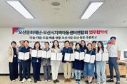 (비전21뉴스) 오산문화재단은 9일 오산시지역아동센터연합회와 오산 청소년들이 건강한 사회 구성원으로 성장할 수 있도록 상호협력을 하기 위한 업무협약을 체결했다고 밝혔다. 협약식은 오산문화재단에서 열렸으며, 최상열 오산문화재단 사무국장과 이광훈 오산시지역아동센터연합회장 및 관계자들이 참석한 가운데 진행됐다. 오산시지역아동센터연합회는 '아동복지법' 및 '사회복지사업법'에 근거해 방과 후 돌봄이 필요한 지역 아동의 건전한 성장을 지원하고 종합적인 복지서비스를 제공하는 단체로, 2025년 9월 현재 9개 센터에서 총 272명의 아동을 돌보고 있다. 이번 협약은 청소년들의 열정, 성장, 행복, 창의의 가치를 위해 문화예술교육 및 문화향유를 위한 협력의 중요성을 인식하고 양 기관 간 신뢰감 형성과 필요한 지역 자원 연계 등 상호 협력함을 목적으로 추진됐다. 이광훈 오산시지역아동센터연합회장은 “그동안 ‘꿈을 향해 날개짓하다’ 행사 때마다 적극적으로 도움을 주셔서 감사한 마음을 가지고 있었다”며 “이제는 상호협력으로 센터에서도 청소년들을 위한 문화재단의 문화예술교육 및 다양한 사업에 대해 적극적으로 연계할 수 있
