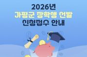 (비전21뉴스) 가평군이 지역 학생들의 균등한 교육 기회를 보장하고 우수 인재를 육성하기 위해 2026년도 장학생 선발에 나선다. 군은 올해 중학생 17명, 고등학생 76명, 대학생 107명 등 총 200명을 장학생으로 선발할 계획이다. 장학금은 학생들의 다양한 상황과 역량을 고려해 △으뜸 △특기 △복지 △환경 △보금자리 등 5개 분야로 나눠 선발한다. 신청 자격은 공고일(3월 3일) 기준 가평군에 3년 이상 거주한 군민 또는 그 자녀인 중‧고등학생과 대학생이다. 신청을 희망하는 학생은 공고문을 참고해 5개 분야 가운데 하나를 선택한 뒤 신청서와 관련 구비서류를 준비해 거주지 관할 읍면사무소에 제출하면 된다. 접수 기간은 3월 4일부터 26일 오후 6시까지다. 자세한 사항은 가평군청 홈페이지 고시공고를 통해 확인할 수 있다.