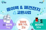 (비전21뉴스) 파주시는 올바른 분리배출 및 자원의 재활용을 확산하고자 종이팩 및 폐건전지 교환 사업을 운영 중이라고 밝혔다. 종이팩은 화장지, 종이수건(타월) 등으로 재활용되는 천연 펄프로 일반 종이와 함께 배출되면 재활용이 어려워진다. 또한, 폐건전지는 수은, 니켈 등 중금속을 포함하고 있어 일반 쓰레기로 배출할 경우 환경오염의 원인이 될 수 있어 분리배출이 더욱 중요하다. 이에 파주시는 유용한 폐자원의 수거율을 높이고 시민들의 참여를 유도하기 위해 일정 기준 이상 종이팩과 폐건전지를 모아 가져오는 시민에게 종량제봉투(10L)를 교환해 준다. 종이팩은 물로 헹궈 펼쳐 말린 후 끈으로 묶어서, 폐건전지는 비닐봉지나 상자 등에 담아 읍면동 행정복지센터나 파주시자원봉사센터로 가져오면 된다. 교환 기준은 종이팩 1kg 또는 폐건전지 50개당 종량제봉투(10L) 2장이며, 1인당 하루 8장(연간 50장)으로 제한한다. 심재우 자원순환과장은 “종이팩·폐건전지 교환사업은 시민들의 작은 실천이 환경을 지키는 큰 힘이 될 수 있다”라며 “자원순환 문화 정착 및 재활용률을 높이는 데에 시민들의 적극적인 참여를 바