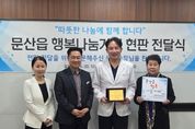 (비전21뉴스) 파주시 문산읍은 지난 10일, 14년간 지역 내 독거어르신 등 취약계층을 위해 꾸준한 나눔을 실천해 온 ‘센트럴제일안과’를 문산읍 행복나눔가게 15호점으로 지정하고 현판 및 감사패를 전달했다. 행복나눔가게 사업은 지역 내 사업체가 정기적인 기부를 통해 취약계층을 지원하는 문산읍의 민관 협력 나눔 사업이다. 이번 15호점 지정은 오랜 기간 이어진 각별한 인연과 순수한 나눔의 뜻이 더해져 지역사회에 큰 감동을 전하고 있다. 장기 후원의 배경에는 임동권 대표원장의 남다른 지역 사랑이 자리하고 있다. 임 원장은 과거 문산제일안과 원장으로 재직하며 2016년부터 2020년까지 문산읍 지역사회보장협의체 위원으로 활동했고, 지역 내 복지 사각지대 발굴에 앞장섰다. 현장에서 직접 마주한 독거어르신들의 어려운 현실을 깊이 이해한 그는, 운정으로 이전해 거리가 멀어졌음에도 후원을 멈추지 않았다. 임 원장은 2012년 6월부터 현재까지 14년간 매월 햄·참치 선물 꾸러미 등 식료품을 정기적으로 후원해 왔으며, 누적 후원 수량은 1만여 개에 달한다. 임동권 센트럴제일안과 대표원장은 “문산제일안과 시절 문산읍 주민들께