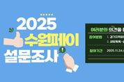 (비전21뉴스) 수원특례시가 24일부터 12월 5일까지 ‘2025년 수원페이 사용자 설문조사’를 한다. 설문 항목은 ▲사용 실태(사용 이유·주기, 월평균 충전액) ▲개선할 사항(적정 인센티브, 불편 사항) ▲만족도(가계 기여 여부, 소상공인소득증대 기여 여부) 등이다. 새빛톡톡 설문투표 게시판에서 설문에 참여할 수 있다. 경기지역화폐 앱의 팝업창을 클릭하면 설문조사 웹페이지로 연결된다. 조사 결과는 향후 수원페이 발행·운영 계획을 수립할 때 기초 자료로 활용할 예정이다. 2025년 10월 말 기준 수원페이 사용자는 91만 4800여 명이다. 수원시 관계자는 “수원페이 사용자의 소중한 의견을 반영해 더 나은 지역화폐 운영계획을 수립하겠다”며 “수원페이 사용자들이 적극적으로 설문조사에 참여해 주시길 바란다”고 말했다.