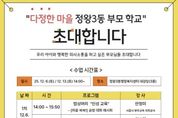 (비전21뉴스) 시흥시 정왕3동 행정복지센터는 오는 12월 6일과 13일 양일간, 자녀와의 올바른 의사소통 방법을 배우고 부모 역할에 대한 자신감을 높일 수 있는 ‘다정한 마을 정왕3동 부모학교’를 운영한다. 교육 대상은 초등학생 이하 자녀를 둔 부모이며, 강의는 정왕3동 행정복지센터 대강당(3층)에서 진행된다. 교육 시간 동안 자녀는 같은 건물 2층 ‘꾸미 청소년 문화의 집’에서 마련된 영화 관람 프로그램에 참여할 수 있어 부모들이 안심하고 교육에 집중할 수 있도록 했다. 이번 부모학교에는 저서 '엄마 난중일기'의 저자로 많은 공감을 얻은 김정은 강사(엄마학교협동조합 이사)를 비롯해, 시흥시 교육자치과 소속 부모 교육 위촉 강사인 안정미, 이소영, 최윤정 강사가 함께한다. 강의는 다수의 부모 상담 경험을 바탕으로 실질적인 도움이 될 수 있는 주제를 선정해 자유로운 대화 형식으로 운영될 예정이다. 참여 신청은 12월 6일 강의는 12월 3일 17시까지, 12월 13일 강의는 12월 10일 17시까지 할 수 있다. 신청은 전화로 하면 된다. 양미현 정왕3동장은 “매달 복지대상자 가정을 방문하면서 직장