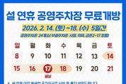 (비전21뉴스) 파주도시관광공사는 12일, 2026년 설 명절을 맞아 시민과 고향을 방문하는 귀성객의 교통편의를 위해 공영주차장 24곳(부설주차장 시청, 의회, 금촌2-17 포함)을 오는 14일(토)부터 18일(수)까지 5일간 무료로 개방한다고 밝혔다. 설 연휴기간 동안 시민들이 안전하고 쾌적하게 주차장을 이용할 수 있도록 사전점검을 마쳤고 효율적인 인력 배치와, 비상연락 체계 유지를 통해 이용 불편을 최소화할 계획이다. 공사 조동칠 사장은 “시민들과 방문객의 주차 불편을 최소화하고, 안전한 시설관리를 통해 편안한 명절 연휴가 될 수 있도록 최선의 노력을 다하겠다”라고 말했다.
