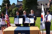(비전21뉴스) 평택시의회는 22일, 미국 애니 라이트 스쿨에서 열린 협약식에 참석해 양해각서(MOU)를 체결하며, 평택국제학교 설립을 공식화했다. 이날 협약식에는 강정구 평택시의회 의장, 정장선 평택시장, 애니 라이트 스쿨 데이비드 오버튼 이사장, 제이크 과드놀라 교장을 비롯한 학교 관계자, 학부모, 학생, 지역 인사들이 함께했다. 협약식에 이어 열린 리셉션에는 메를린 스트릭랜드 연방 하원의원, 데니 헥 워싱턴주 부주지사, 라이언 멜로 피어스 카운티 행정수반 등 지역 주요 인사들이 참석해 지역 협력을 논의했다. 강정구 의장은 “오늘 양해각서(MOU) 체결을 계기로 평택국제학교 설립에 필요한 실무적 협의를 완료하고 교육환경 선진사례를 직접 확인함으로써 평택시의 글로벌 교육환경이 조속히 조성되기를 바란다”라고 하며 “시민들에게 실질적인 혜택이 돌아가도록 꼼꼼히 점검하고 정책에 반영하겠다”고 밝혔다.