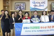 (비전21뉴스) 광명시가 경기도가 선정하는 인권 행정추진 우수 기관으로 3년 연속 선정되며 인권 선도 도시로 확고히 자리매김했다. 시는 지난 9월 30일 경기도청 다산홀에서 열린 ‘2025년 경기인권포럼’에서 경기도 인권 행정추진 우수 자치단체 경기도지사 표창을 받았다. 경기도는 31개 시군을 대상으로 인권행정 제도와 정책 추진 성과를 종합 평가해 5개 우수 자치단체를 선정했으며, 광명시는 평가 제도가 도입된 2023년부터 올해까지 매년 수상하는 성과를 거뒀다. 이번 수상은 ▲인권행정 제도 구축(인권조례제정, 인권위원회 구성 및 운영, 인권교육 실시 등), ▲인권정책 수립(인권기본계획 수립 및 연도별 시행계획 수립, 인권실태조사 및 인권영향평가, 인권문화행사 등) ▲지역사회 인권증진 활동 ▲시민 인권 보장과 존중 문화 확산 등 전반적 성과를 전문가들로부터 인정받은 결과다. 광명시는 2012년 지방자치단체 최초로 ‘광명시민인권센터’를 개소하고, ‘인권보장 및 증진 5개년 기본계획’ 수립하는 등 인권 친화적 행정의 기틀을 마련해 왔다. 특히 인권기본계획에 재개발·재건축이 많은 도시 특성을