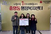 (비전21뉴스) 오산시 중앙동 행정복지센터는 지난 11일 중앙동 주민이자 57통 통장인 이미숙 씨가 관내 취약계층 이웃을 돕기 위해 성금 100만 원을 기탁했다고 밝혔다. 이미숙 통장은 평소 주민들과 가장 가까운 위치에서 소통하며 행정과 주민을 잇는 현장 중심의 역할을 성실히 수행해 왔으며, 취약계층을 위한 나눔 실천에도 적극 참여하는 등 지역 내 복지사각지대 해소에 기여해 오고 있다. 이미숙 통장은 “통장으로 활동하며 주민들과 소통하다 보니 어려운 이웃들이 많다는 것을 느꼈고, 그분들에게 조금이나마 힘이 되고 싶은 마음으로 기부를 결정했다”며 “성금이 꼭 필요한 곳에 사용되어 이웃들이 새해를 더 따뜻하게 보내는 데 보탬이 되길 바란다”고 말했다. 백경희 중앙동장은 “주민을 대표해 이웃사랑을 실천해 주신 따뜻한 마음에 깊이 감사드린다”며 “기탁해 주신 성금은 도움이 필요한 이웃들에게 소중히 전달해 모두가 행복한 중앙동을 만들어 가는 데 최선을 다하겠다”고 밝혔다.