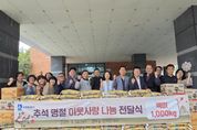 (비전21뉴스) 수원시 장안구 조원1동은 지난 24일, 추석 명절을 앞두고 관내 어려운 이웃을 위한 '추석맞이 이웃사랑 나눔 행사'를 개최했다고 밝혔다. 이날 행사는 주민자치회를 비롯하여 조원1동의 10개 단체와 북수원 신협, 한국건강관리협회 경기지부, 조원시장 상인회 등 다양한 곳에서 참여해 더욱 의미를 더했다. 목명균 조원1동 주민자치회장은 "우리 주변의 이웃들이 풍요로운 한가위를 보내는 데 보탬이 되고자 여러 단체 회원들이 한마음으로 뜻을 모았다"며, "앞으로도 나눔의 손길이 계속 이어질 수 있도록 노력하겠다"고 말했다. 김옥영 조원1동장은 "어려운 이웃을 위해 따뜻한 나눔을 실천해 주신 모든 후원자분들께 진심으로 감사드린다"며, "전달해주신 소중한 물품들은 필요한 이웃들에게 잘 전달될 수 있도록 하겠다"고 전했다. 조원1동은 전달받은 후원 물품들을 관내 저소득 가구와 복지 사각지대에 놓인 이웃들에게 전달할 예정이다.