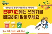 (비전21뉴스) 파주시는 환경미화원 휴무 보장을 위해 추석 연휴 기간인 10월 4일부터 10월 6일, 10월 8일부터 10월 9일까지는 생활폐기물을 배출해서는 안 되며, 이 기간 동안에는 생활쓰레기 수거가 중단된다고 밝혔다. 단, 운정신도시 내 자동집하시설이 설치된 지역은 추석 연휴에도 평소처럼 집하시설을 통해 종량제봉투를 정상적으로 배출할 수 있고, 연휴 마지막 날인 10월 9일 18시부터는 쓰레기 배출이 가능하다. 시는 추석 명절과 아시아태평양경제협력체(APEC) 정상회의를 계기로, 행정안전부 주관 ‘대한민국 새단장 캠페인’에 동참해 9월 22일부터 10월 1일까지 중점 청소 및 단속 기간으로 지정했다. 이 기간 동안 추석맞이 대청소를 통해 청소 취약지역을 정비하고, 쓰레기 무단투기 예방을 위한 집중 단속을 실시해 연휴 기간 동안 청결한 환경을 유지할 계획이다. 또한 시는 연휴 기간인 10월 3일부터 10월 9일까지 시민들의 불편을 최소화하기 위해 상황반을 운영하고, 청소대행업체에서는 15개 기동반을 배치해 쓰레기 관련 불편 사항과 민원을 신속하게 처리할 계획이다. 특히 야당역, 운정역, 산내마
