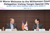 (비전21뉴스) 이상일 용인특례시장이 13일 용인의 자매도시인 미국 텍사스주 윌리엄슨카운티의 대표단과 만나 양 도시의 발전을 위한 협력 방안을 논의했다. 이날 시청 접견실에서 이 시장은 스티븐 스넬(Steven Snell) 윌리엄슨카운티장과 러스 볼즈(Russ Boles) 윌리엄슨카운티 커미셔너, 데이브 포터(Dave Porter) 윌리엄슨카운티 경제개발파트너십 전무이사를 만나 경제와 산업, 교육 등 다양한 분야에 대해 의견을 나눴다. 이날 이상일 시장을 만난 스티븐 스넬 윌리엄슨카운티장은 전임자인 빌 그래벨(Bill Gravell) 윌리엄슨카운티장에 이어 지난 4월 신임 윌리엄슨카운티장으로 취임했다. 이상일 시장은 “양 도시는 도시 이름을 붙인 명예도로명을 부여하면서 우정을 쌓고, 교류협력을 활발하게 하고 있다”며 “윌리엄슨카운티 대표단과 텍사스 주립대학교 관계자들이 용인에 있는 단국대학교 관계자를 만나 협력관계 구축에 대한 논의를 진행하는 것으로 알고 있는 데 양 도시에 있는 대학이 교류하는 것은 매우 뜻 깊은 일”이라고 말했다. 이 시장은 “윌리엄슨카운티에는 첨단산업 관련 기업들의 입주가 이어