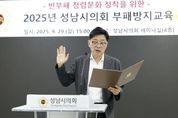 (비전21뉴스) 성남시의회는 29일 의회 4층 세미나실에서 전 의원을 대상으로 부패방지교육을 실시했다. 이번 교육은 지방의원에게도 적용되는 '공직자의 이해충돌방지법'의 취지를 되새기고, 사적 이해관계와 겸직 등과 관련한 사회적 요구에 적극 부응하기 위해 마련됐다. 교육에 앞서 의원들은 청렴서약서에 서명했으며, 안광림 부의장이 대표로 서약을 낭독하며 공정한 의정활동과 생활 속 청렴 실천을 다짐했다. 안광림 부의장은 “추석을 앞두고 부패방지교육을 함께하게 되어 뜻깊게 생각한다”며 “오늘의 배움을 계기로 청렴 의지를 더욱 굳건히 하고, 시민이 신뢰하는 성남시의회로 발전해 나가겠다”고 말했다.