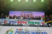 (비전21뉴스) 순천시는 지난 10일부터 13일까지 4일간 구례군 일원에서 열린 제65회 전라남도체육대회에서 종합우승을 차지하며 3년 연속 종합우승의 쾌거를 달성했다. 전남 22개 시군 7,000여 명의 선수단이 참가한 이번 대회에 순천시는 23개 전 종목, 402명의 선수단이 참가해 그동안 갈고닦은 실력과 기량을 유감없이 발휘하며 종합 1위의 영예를 안았다. 종목별로는 배구, 소프트테니스, 족구, 바둑에서 1위를 축구, 복싱에서 2위를 골프, 농구, 검도, 씨름, 유도, 볼링에서 3위를 거두는 등 전 종목에서 고른 활약을 선보였다. 한편 대회 기간 중 8개 시·군 선수 및 관계자 3,000명 이상의 방문객이 지역 내에서 숙박과 식사, 주요 관광지를 방문하는 등 소비 활동을 한 것으로 분석된다. 이는 순천이 교통·숙박·먹거리 등 생활인프라가 잘 갖춰진 도시로, 경기 참가자뿐만 아니라 인근 지역 선수단의 추가 체류를 유도하며 소비 확대에 기여한 것으로 평가된다. 이에 따라 숙박·외식업 중심 직접 소비 및 연관 산업에 미치는 효과까지 총 경제유발효과는 약 23억 원 이상에 이르는 것으로 나