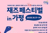 (비전21뉴스) 가평군은 (사)문화현상과 함께 오는 17일부터 19일까지 3일간 ‘재즈페스티벌 in 가평’을 개최한다. 이번 축제는 누구나 부담 없이 즐길 수 있는 무료 음악 축제로, 가평읍내 곳곳(잣고을 광장, 흥농종묘 앞 삼거리, 음악역1939 뮤직홀, 자라섬 서도 등)을 재즈 선율로 물들일 예정이다. 올해 ‘재즈페스티벌 in 가평’은 세계적인 아티스트와 한국의 대표 뮤지션들이 함께하는 풍성한 라인업으로 구성됐다. 콜롬비아의 강렬한 라틴계 리듬을 선보이는 ‘프렌테 쿰비에로’, 싱가포르의 소울 보컬 여왕으로 불리는 ‘알레메이 페르난데즈’, 프랑스의 낭만적인 감성 보컬리스트 ‘마리옹 랑팔’ 등이 무대를 꾸민다. 국내 출연진 무대 역시 다채롭다. 한국 록의 아이콘 ‘김민규(델리스파이스, 스위트피)’를 비롯해, 한국 펑크 음악의 개척자 ‘한상원 밴드’, 그리고 2025 한국대중음악상 최우수 재즈 보컬 음반상 수상자 ‘남예지’가 참여해 세대를 아우르는 음악의 향연을 선보인다. 축제는 3일 동안 총 5가지 테마 스테이지로 나뉘어 운영된다. 먼저, ‘파티스테이지(잣고을광장)’에서는 록, 펑크, 라틴 등 신나