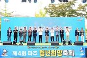 (비전21뉴스) 파주시는 지난 27일 금릉역 앞 중앙광장에서 열린 ‘제4회 파주 청년희망축제’가 시민들의 뜨거운 호응 속에 성공적으로 마무리됐다고 밝혔다. 올해 축제는 ‘파주청년, 다시 도약하다!(Paju Youth Again, Jump Up!)’을 주제로, 도약하는 청년세대의 열정과 활력을 시민과 함께 나누는 장으로 마련됐다. 이번 축제의 백미는 개막식과 함께 진행된 ‘파주 청년 비전선포식’이었다. 청년정책협의체 공동위원장은 무대에서 ‘청년이 뿌리내리는 도시, 파주’라는 비전을 선포하며, 청년과 지역사회가 함께 나아갈 미래의 방향을 제시했다. 특히 청년들이 직접 낭독한 선언문과 청년친화도시 지정을 위한 기념행사는 파주시의 확고한 의지를 대외적으로 알리는 계기가 됐다. 오후 2시부터 8시까지 진행된 이번 축제는 ▲사전공연 ▲청년 골든벨 ▲청년 가요제 ▲청년공간 특별강좌 ▲프리미엄 수제 맥주 시음 ▲청년창업가 플리마켓 ▲무료 체험공간 ▲대형 ‘파랑’ 포토존 등 다채로운 프로그램으로 꾸려졌다. 가요제 무대에서는 청년들의 끼와 열정이 빛났으며, 청년창업가 판매공간 및 수제 맥주 시음 공간은 청년 창업 아