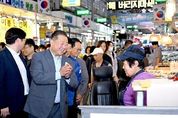 (비전21뉴스) 김경일 파주시장은 지난 1일 추석 명절을 앞두고 금촌전통시장과 문산자유시장을 찾아 상인들과 시민들을 만나며 따뜻한 명절 분위기를 조성했다고 밝혔다. 김 시장은 지역화폐(파주페이)로 각종 물품을 구매하며 상인들을 격려했으며, 지역경제 활성화를 위한 민생회복 소비쿠폰 2차 지급에 시민 모두가 빠짐없이 신청해 줄 것과 9월 15일부터 무제한 할인쿠폰을 제공하고 있는 공공배달 앱 ‘배달특급’의 적극적인 이용을 부탁하며 지역경제 현장의 목소리를 청취했다. 김경일 파주시장은 “어려운 경기 여건 속에서도 항상 같은 자리에서 꿋꿋이 일하고 있는 소상공인들이야말로 지역경제의 버팀목”이라며 “소비 위축과 고물가·고금리로 어려움을 겪는 소상공인을 돕고 지역경제 활성화를 위해 최선을 다하겠다”라고 말했다. 파주시는 장기화된 경기 침체 속 민생경제 안정을 위해 올해 전국 최대 규모인 3,189억 원의 파주페이를 발행했다. 특히 올해 설(2월)과 가정의 달(5월)에 이어 추석이 있는 10월에도 파주페이 충전한도를 최대 100만 원으로 확대해 시민의 가계 부담 경감에 힘쓰고 있다.