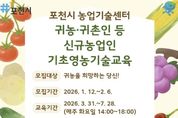 (비전21뉴스) 포천시농업기술센터 2026년 포천시 귀농·귀촌인 등 신규농업인 기초영농기술교육’ 교육생을 오는 2월 6일까지 모집한다. 이번 교육은 포천시로 귀농했거나 귀농을 희망하는 신규농업인을 대상으로 농업경영 전반에 대한 이해와 기초 영농기술 교육을 제공해 안정적인 농촌 정착과 전문농업인으로의 성장을 지원하기 위해 마련됐다. 올해 교육 인원은 25명 내외로 운영될 예정이다. 주요 교육 내용은 귀농 정책사업과 영농생활에 필요한 법률, 지속 가능한 농장 디자인 등 농촌생활 분야를 비롯해 토양 관리와 재배 기술, 소규모 시설하우스 조성, 친환경 농자재 제조 및 활용 등 농업기초기술 교육으로 이뤄진다. 또한 우수 농가 및 체류형 귀농마을 현장 견학을 통해 실제 농업 현장을 직접 체험할 수 있도록 할 예정이다. 교육은 3월 31일부터 7월 28일까지 매주 화요일, 총 17회에 걸쳐 진행되며 교육비는 전액 무료다. 특히 이번 교육 과정은 귀농 자금 신청 시 교육 이수 시간으로도 인정돼 교육생들에게 실질적인 도움이 될 것으로 기대된다. 교육생 모집 기간은 2월 6일까지이며, 모집 대상은 포천시에 귀농한 지