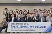 (비전21뉴스) 경기도의회 보건복지위원회 김동규 의원(더불어민주당, 안산1)은 8일 안산와스타디움 기자실에서 사회복지 종사자 처우개선을 주제로 정담회를 열었다. 이날 회의에는 박찬수 경기도사회복지사협회장과 황인득 안산시사회복지사협회장을 비롯해 안산시 사회복지 종사자 40여 명이 참석해 사회복지 현장의 어려움과 제도적 개선 방향을 논의했다. 참석자들은 우선 사회복지사 처우개선비의 장기 동결 문제를 지적했다. 경기도는 2017년부터 월 5만 원을 지급해왔으나 현재까지 9년째 동결 중이다. 여기에 지역사회보장협의체, 사회복지 직능단체, 장기요양기관 종사자 등 약 1만 2천여 명은 지원 대상에서 제외돼 형평성 논란이 이어지고 있다. 동일한 업무를 하면서도 시설 유형에 따라 차등을 받는 구조가 종사자의 사기와 서비스 질 모두에 악영향을 준다는 것이다. 이와 함께 휴가제도 확대 필요성도 제기됐다. 장기근속휴가, 자녀돌봄휴가, 유급병가 등이 현실적으로 보장돼야 하며, 특히 안산시의 경우 24시간 운영되는 그룹홈이 많아 대체인력 부족 문제가 심각하다는 의견도 나왔다. 또, 도서ㆍ벽지에서 제외돼 특수지근무수당을 받지 못하는 불