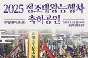 (비전21뉴스) ‘2025 정조대왕 능행차 축하공연’이 9월 28일 수원화성 행궁광장에서 열린다. 오후 2시 40분부터 7시까지 능행차 재현행렬(수원구간)의 마지막 장소인 수원화성 행궁광장에서 다채로운 프로그램이 펼쳐진다. 국제자매도시 공연단의 축하공연으로 시작해, 정조대왕 행차를 환영하는 축하행렬인 수원화성 퍼레이드, 정조대왕 능행차 재현·입궁 퍼포먼스, KBS 국악관현악단과 국악인 김영임, 유태평양의 협연 콘서트로 이어진다. 누구나 무료로 공연을 관람할 수 있다. 행사 당일 관람석 2000여 석을 운영한다. 수원시 관계자는 “성대한 정조대왕 능행차 행렬뿐 아니라 시민들이 함께 즐길 수 있는 다양한 프로그램을 마련했다”며 “1795년 을묘년 원행으로 되돌아간 듯한 특별한 경험을 하고, 다양한 볼거리를 즐기시길 바란다”고 말했다. 정조대왕 능행차 재현 행렬(수원 구간)은 9월 28일 오전 11시 30분 노송지대(1구간)에서 시작된다. 장안문(2-1구간)을 거쳐 행궁광장(2-2구간)에서 마무리된다.