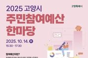 (비전21뉴스) 고양특례시는 오는 10월 14일 오후 3시 30분, 일산호수공원 고양꽃전시관(북카페)에서 ‘2025년 고양특례시 주민참여예산 한마당’을 개최한다고 밝혔다. 주민참여예산제는 예산 과정에 시민이 직접 참여함으로써 지역의 주인 의식을 높이고 재정민주주의를 실현하는 중요한 제도다. 시는 지난해 7월부터 올해 6월 말까지 온오프라인을 통해 총 250건의 주민 제안사업을 접수받았다. 이후 소관 부서의 검토와 주민참여예산위원회의 심사를 거쳐 온라인 시민투표를 실시하고 그 결과를 이번 행사에서 공개할 예정이다. 현재 고양시청 누리집(홈페이지)에서는 2026년도 주민참여예산 제안사업에 대한 사전 온라인 시민투표(9.26.~10.8.)가 진행 중이다. 이번 행사에서는 2025년도 주민참여예산으로 반영돼 실제로 실행된 사업 중 우수 실행사례도 함께 소개된다. 주민참여예산의 의미를 시민들과 다시 공유하고, 향후 제도의 발전 방향을 함께 모색하는 자리가 될 예정이다. 행사에서 결정된 제안사업 우선순위는 오는 10월 중 ‘주민참여예산 조정협의회’심의를 거쳐 2026년도 고양시 예산안에 최종 반영
