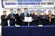 (비전21뉴스) 화성특례시는 16일 시청 중앙회의실에서 마파지태양광협동조합과 ‘화성형 기본소득 에너지자립마을 조성을 위한 업무협약(MOU)’을 체결했다. 이날 협약식에는 정명근 화성특례시장을 비롯해 김진원 마파지태양광 협동조합장 등이 참석해, 주민주도형 재생에너지 기반 에너지자립마을 조성사업의 추진에 상호 협력하기로 했다. 이번 사업은 국유지를 활용해 주민이 사업비 전액을 부담해 100% 주민주도형 ‘에너지자립마을’을 조성하는 경기도 최초 사례로, 재생에너지 수익을 마을 복지와 기본소득으로 연계하는 ‘화성형 기본사회’ 정책의 첫 시범 모델이다. 마파지태양광협동조합은 석포6리 주민 25가구가 공동 운영하는 협동조합으로, 사업주체로서 장안면 석포리 823번지 제방 국유지에 415kW 규모의 태양광 발전설비를 설치한다. 사업비는 총 5억 2천만 원으로 전액을 주민이 자부담한다. 시는 협약에 따라 인허가, 관계기관 협의, 제도 검토 등 사업 추진에 필요한 행정적·제도적 지원을 담당하고, 에너지자립마을이 안정적으로 운영될 수 있도록 정책적 기반 마련에 협력한다. 또한 재생에너지 수익이 마을 복지