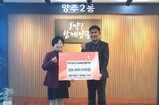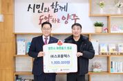 (비전21뉴스) 양주시가 31일 ㈜스포플렉스로부터 연말을 맞아 이웃돕기 성금 100만 원을 기탁받았다. 이날 기탁식에는 남병태 대표가 참석했으며, 기탁된 성금은 경기 사회복지공동모금회를 통해 양주시 취약계층 지원에 사용될 예정이다. 남병태 대표는 “연말을 맞아 지역의 어려운 이웃들에게 작은 힘이라도 보태고 싶었다”며 “앞으로도 지역사회와 함께하는 기업으로서 나눔을 이어가고 싶다”고 말했다. 시 관계자는 “㈜스포플렉스의 따뜻한 기부에 감사드리며, 기부금이 꼭 필요한 곳에 잘 전달돼 많은 분들에게 힘이 될 수 있도록 최선을 다하겠다”고 전했다. 한편 광적면에 소재한 ㈜스포플렉스는 헬스기구 제조업체로, 사회적 책임을 실천하며 나눔 활동에 동참하고 있다.