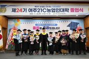 (비전21뉴스) 여주시에서는 지난 11월 25일 농업기술센터 대회의실에서 제24기 여주21C농업인대학 졸업식을 성황리 개최했다. 이날 행사에는 이충우 시장을 비롯해 농업 관련 기관장 및 단체장, 농업인대학 총동문회 임원, 졸업생 가족 등 약 100명이 참석하여 졸업생들을 축하했다. 올해 여주21C농업인대학은 청년스마트농업과, 생명농업과, 치유농업과 3개 과정으로 운영됐으며, 3월부터 11월까지 총 25회 100시간에 걸쳐 전문 강사진 지도 아래 각 과정별 특성에 맞는 이론·실습·현장교육을 추진했다. 이날 졸업식에는 89명의 졸업생이 배출됐으며 청년스마트농업과 정용우 회장이 농촌진흥청장상을 생명농업과 백광현 회장, 치유농업과 김용규 회장이 공로상을 수상하는 등 총 7개분야에서 24명의 졸업생이 수상하는 영예를 안았다. 이충우 시장은 ‘변화하는 농업에 대항하기 위해 스마트팜 보급 확대, 농업기술 교육강화, 치유농업 기반 조성 등 미래 농업 육성 정책을 적극적으로 추진하겠다’라며 인사말을 전했다. 2002년부터 시작된 여주21C농업인대학은 농업을 이끌어갈 유능한 인재를 발굴하고 전문기술과 경영능력을 갖춘