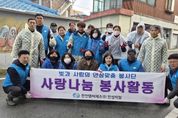 (비전21뉴스) 안성시는 지난 25일 한전MCS(주) 안성지점에서 관내 취약계층의 따뜻한 겨울나기를 돕기 위해 연탄 나눔 봉사활동을 진행했다고 밝혔다. 임직원 20명이 참여한 이번 봉사활동은 고령과 경제적 어려움으로 난방에 취약한 독거노인 최모씨 댁에 연탄 400장을 직접 나르며 온기를 전했다. 이정우 지점장은 “추위로 어려움을 겪는 이웃들이 조금이라도 따뜻한 겨울을 보내셨으면 좋겠다. 앞으로도 지역사회를 위해 나눔을 실천하고, 안성시 위기이웃 지원에 더욱 힘을 보태겠다”고 말했다. 한전MCS(주) 안성지점은 직원들의 기부와 봉사로 매년 취약계층 동절기 연탄 나눔, 주거환경개선, 명절선물꾸러미 지원 등 사회공헌 활동을 꾸준히 이어오고 있다. 또한 직원 모두가 안성시 명예사회복지공무원으로서, 매월 방문하는 전력서비스 업무 특성을 활용해 취약계층을 발굴하는 지역 인적안전망 역할을 톡톡히 해내고 있다.