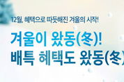 (비전21뉴스) 경기도와 경기도주식회사가 공동 운영하는 경기도 공공배달앱 배달특급이 겨울을 맞아 12월 한 달간 ‘겨울이왔동(冬)’ 소비자 할인 프로모션을 진행한다. ‘겨울이왔동(冬)’ 소비자 할인 이벤트는 ‘통 큰 세일’ 프로모션 종료 등으로 아쉬움이 남는 소비자들의 편익을 증대하기 위해 마련했다. 배달 특급 전체 회원, 전체 서비스 지역을 대상으로 1만2천원 주문에 사용가능한 3천원 할인 쿠폰을 예산 소진시까지 1일 1인 1회 지급한다. 한편 배달특급의 모든 이벤트는 해당 상단 배너 기능을 통해 확인 가능하며, 지역에 따라 할인 조건과 금액이 달라질 수 있어 사전 확인이 필요하다.