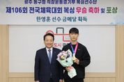 (비전21뉴스) 광주 동구는 직장운동경기부 동구복싱단 소속 한영훈 선수가 최근 부산 벡스코에서 열린 ‘제106회 전국체육대회’에 출전해 금메달을 수상했다고 밝혔다. 동구복싱단의 간판선수인 한영훈 선수는 이번 대회 64㎏급에 출전해 뛰어난 기량으로 최종 1위에 오르며 금메달을 목에 걸었다. 한영훈 선수는 제103회부터 105회까지 전국체육대회에서 연속 우승을 차지한 데 이어 이번 제106회 대회에서도 금메달을 획득하며 4연속 빛나는 성과를 거뒀다. 한 선수는 굵직한 대회에서 여러 차례 입상하며 국내 복싱계의 유망주로 확고히 자리매김하고 있다. 또한 이날 동구복싱단의 창단 멤버였던 이행석 선수가 지난해 국군체육부대 입대 후 올해 9월 제대, 광주광역시복싱협회 소속으로 이번 전국체전에 출전해 56㎏급에서 동메달을 얻었다. 동구복싱단은 2020년에 재창단된 후 출범 1년 만에 단일 전국대회 전원 메달 획득이라는 성적을 거뒀다. 2022년부터는 전국체전에 출전해 매년 메달을 획득, 올해까지 금메달 3개, 동메달 2개를 확보했다. 7월 제7회 경찰청장기 전국복싱대회에서는
