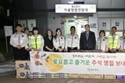 (비전21뉴스) 박형덕 동두천시장은 9월 29일 추석 명절을 앞두고 동두천시 자율방범대를 방문해 위문품을 전달하고 지역 치안과 범죄 예방을 위해 헌신하는 대원들을 격려했다. 이날 위문은 자율방범연합대를 시작으로 독수리·백마·올빼미·태풍·번개 자율방범대 순으로 진행됐으며, 박 시장은 방범대원들의 애로사항과 건의 사항을 청취하고 주요 현안에 대한 의견을 나눴다. 박 시장은 “연합대를 포함한 9개 자율방범대 200여 명의 대원들께서 시민 안전과 범죄 예방을 위해 꾸준히 애써 주셔서 감사하다”라며“지역을 지키는 든든한 파수꾼으로서 자부심과 긍지를 가지고 앞으로도 활발히 활동할 수 있도록 시에서도 적극 지원하겠다”라고 말했다. 권태연 연합대장은 “최근 다양한 지역 행사로 대원들이 고생이 많았다”라며“늘 묵묵히 방범 활동에 임해 주시는 대원들께 감사드리며, 앞으로도 시민이 안심할 수 있는 동두천을 만들기 위해 함께 노력하자”라고 화답했다. 한편, 동두천시 자율방범대는 야간 방범 순찰과 청소년 선도·보호, 범죄 신고, 지역 행사 지원 등으로 부족한 경찰력을 보완하며 범죄 없는 안전한 지역사회를 만들기 위한 다양