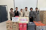 (비전21뉴스) 과천시 갈현동은 26일 갈현동 행정복지센터에서 ‘새안양신협’과 겨울철 취약계층을 지원하기 위한 기부 물품 전달식을 가졌다. 이날 전달식에는 ‘새안양신협’ 이상영 이사장, 갈현동장 등이 참석했으며, ‘새안양신협’은 갈현동에 생필품 꾸러미 20박스, 라면 10박스, 이불 3채, 온열매트 6채(약 155만 원 상당)를 기부했다. 기부된 물품은 저소득 취약계층의 따뜻한 연말연시를 위해 전달될 예정이다. ‘새안양신협’은 2023년 갈현동 행정복지센터 개청 이래, 매년 설 명절에 떡국떡 및 기부금을 후원하는 등 취약계층을 위한 기부활동에 꾸준히 동참하며 나눔을 실천하고 있다. ‘새안양신협’ 이상영 이사장은 “어려운 이웃들이 따뜻한 겨울을 나는 데 조금이나마 도움이 됐으면 좋겠다”라며 “앞으로도 지역 내 도움이 필요한 이웃들을 위해 나눔 활동에 적극 앞장서겠다”라고 전했다. 이태헌 갈현동장은 “어려운 이웃들을 위해 변함없이 의미 있는 나눔을 실천해 주고 계시는 ‘새안양신협’ 이상영 이사장님께 감사드린다”라며 “기부하신 물품은 도움이 필요한 분들에게 소중히 전달하겠다”라고 말했다. 한